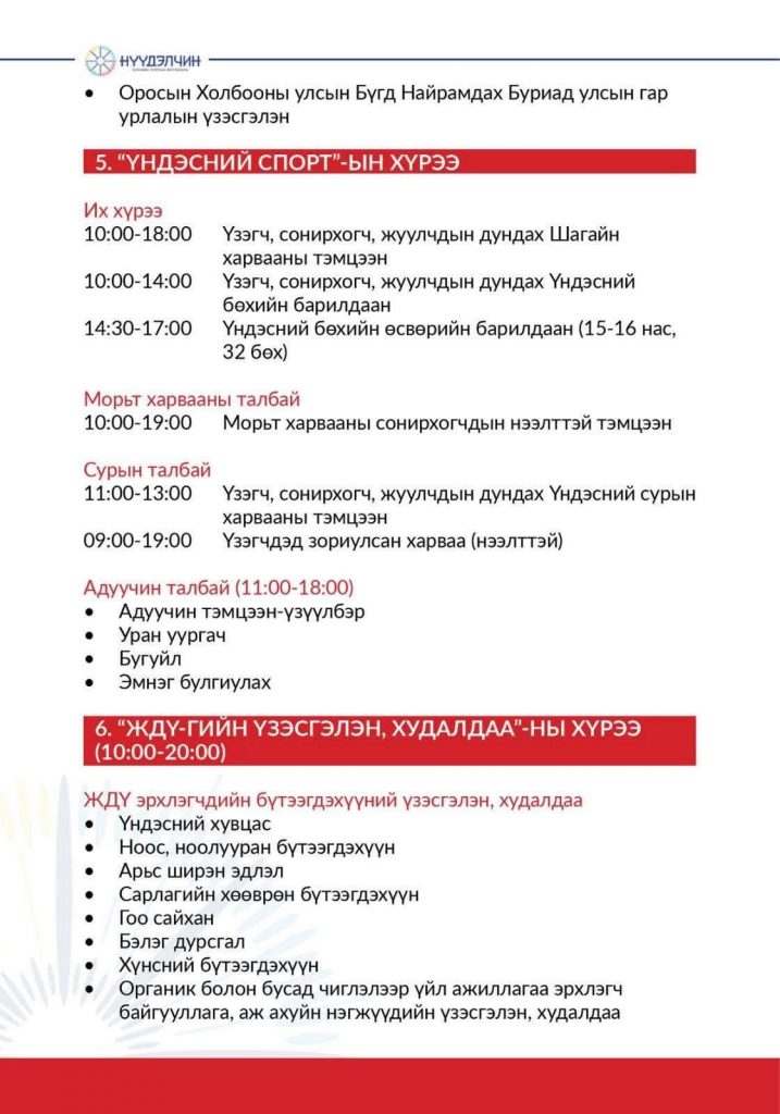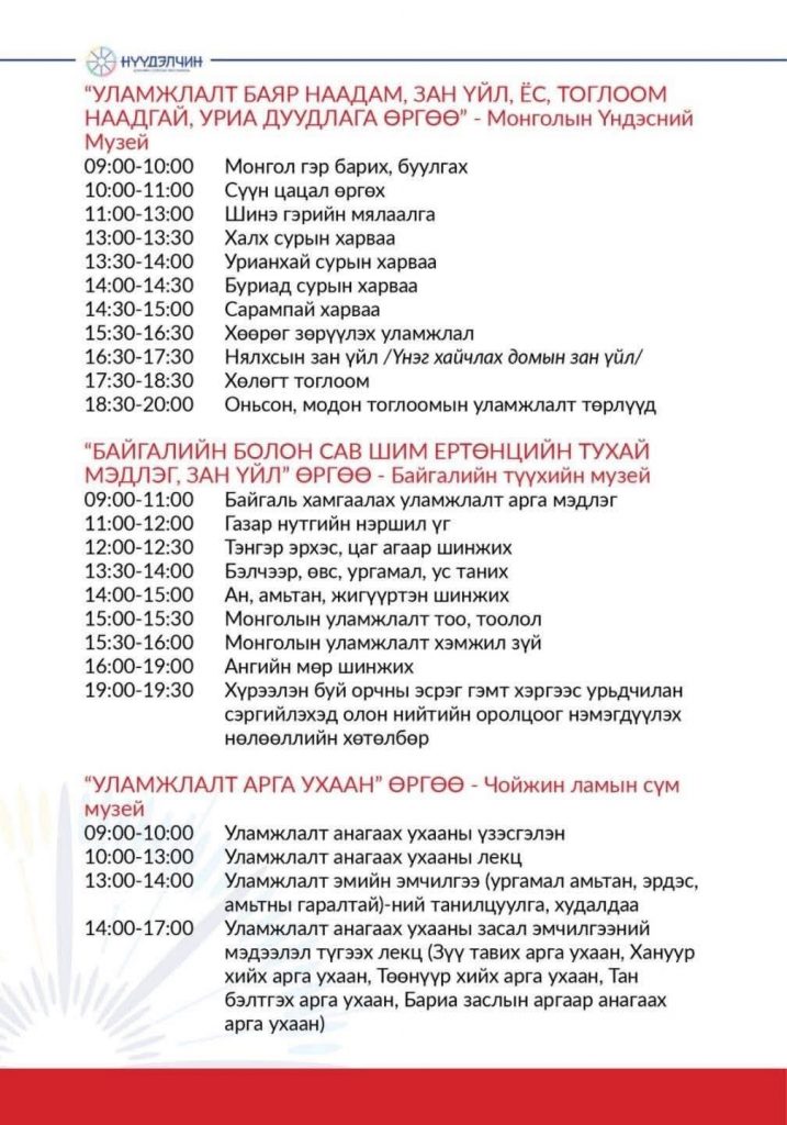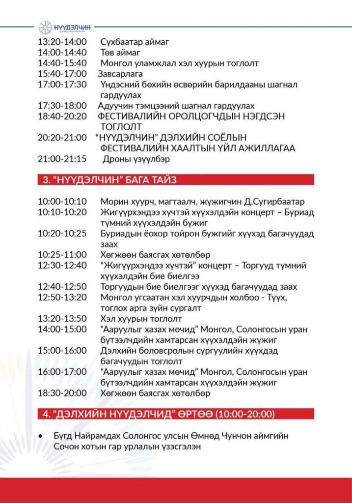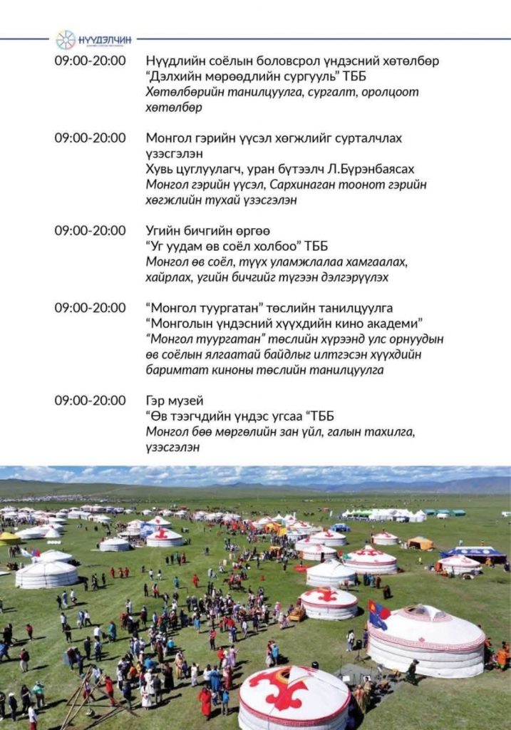 Налайх дүүрэг, “Тайж хайрхан” уулын бэлд болж буй дэлхийн өв соёлын фестивалийн сүүлчийн өдрийн буюу өнөөдөр /2025.08.24/-ийн хөтөлбөртэй танилцана уу.