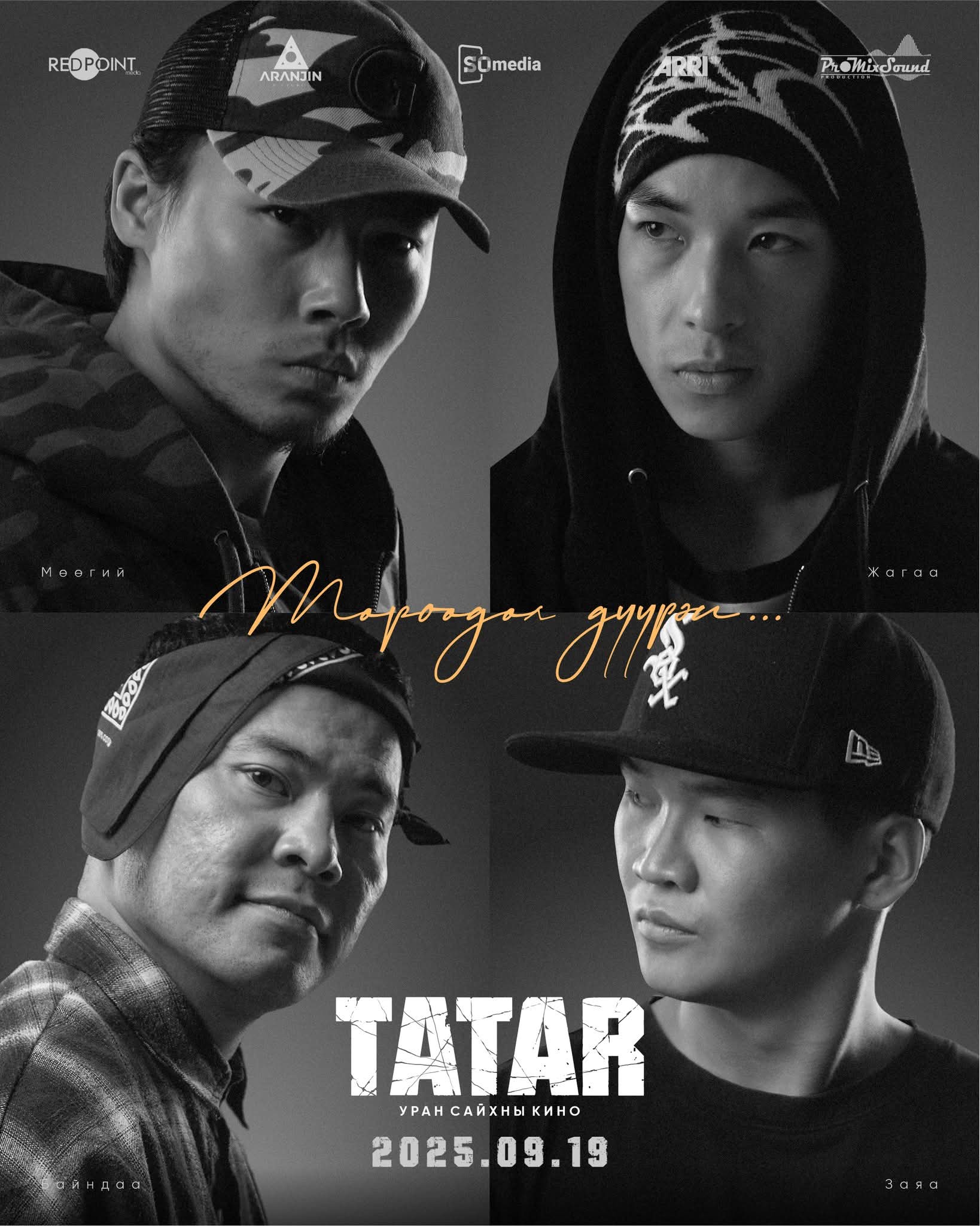 Харин Татар хамтлагийн ахлагч Заяагийн дүрд жүжигчин, рэппэр Гангаа, хамтлагийн гишүүн Д.Мөнхчулууны дүрд жүжигчин Х.Сумъяадорж, хамтлагийн гишүүн Жагаагийн дүрд жүжигчин Н.Түвшин, хамтлагийн гишүүн асан Байндаагийн дүрд жүжигчин Б.Тэмүүжин нар тус тус тогложээ.