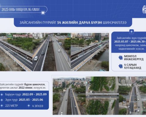 Зайсангийн гүүрийг 54 жилийн дараа бүрэн шинэчиллээ Энэ онд Зайсангийн зүүн гүүрийг өргөтгөж шинэчлэх ажлыг үндэсний бүтээн байгуулагчид, монгол инженерүүд дөрвөн сарын хугацаанд хийж гүйцэтгэлээ. Энэ оны нэгдүгээр сарын 10-наас авто