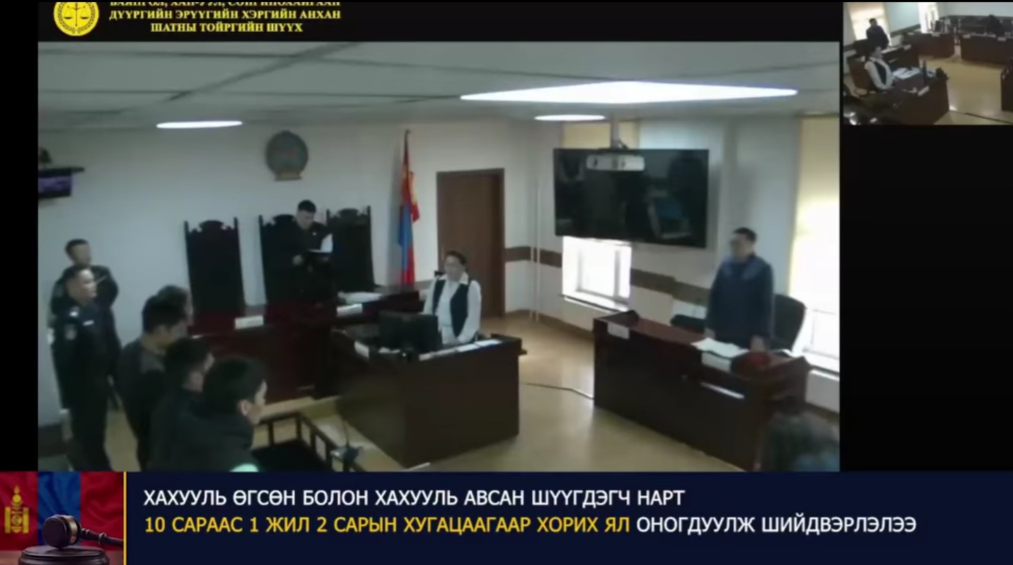 Анхан шатны шүүх: Шүүгдэгч Б.Хаш-Эрдэнэ, Э.Эрхэмбаяр, Н.Мөнхсайхан нарыг Эрүүгийн хуулийн тусгай ангийн 22.4 дүгээр зүйлийн 1 дэх хэсэгт заасан нийтийн албан тушаалтан хахууль өгөгчийн ашиг сонирхлын үүднээс албаны чиг үүргээ хэрэгжүүлээгүйн хариуд хахууль авсан гэмт хэргийг үйлдсэн гэм буруутайд тооцож шүүгдэгч Б.Хаш-Эрдэнэ, Э.Эрхэмбаяр нарт нийтийн албанд томилогдох эрхийг 2 жил 6 сарын хугацаагаар хасаж, 1 жил 2 сарын хугацаагаар хорих ял, шүүгдэгч Н.Мөнхсайханд нийтийн албанд томилогдох эрхийг 2 жил 3 сарын хугацаагаар хасаж, 1 жил 1 сарын хугацаагаар хорих ял, шүүгдэгч А.Мөнхбаяр нь Эрүүгийн хуулийн тусгай ангийн 22.5 дугаар зүйлийн 1 дэх хэсэгт заасан өөртөө давуу байдал бий болгох зорилгоор бусдад албан тушаалтай нь холбогдуулан хахууль өгөх гэмт хэргийг үйлдсэн гэм буруутайд тооцож нийтийн албанд томилогдох эрхийг 2 жил 6 сарын хугацаагаар хасаж 10 сарын хугацаагаар хорих ял тус тус оногдуулж шийдвэрлэлээ.