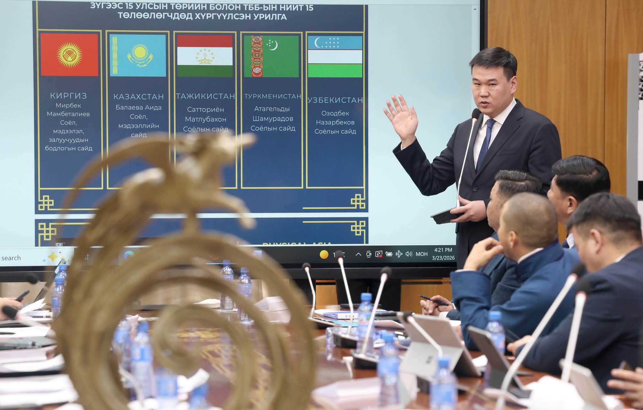 Монгол Улсын Шадар сайд Х.Ганхуягаар ахлуулсан “Дэлхийн адууны өдөр”-ийг зохион байгуулах ажлын хэсгийн дөрөвдүгээр хурал өнөөдөр /2026.03.23/ боллоо.