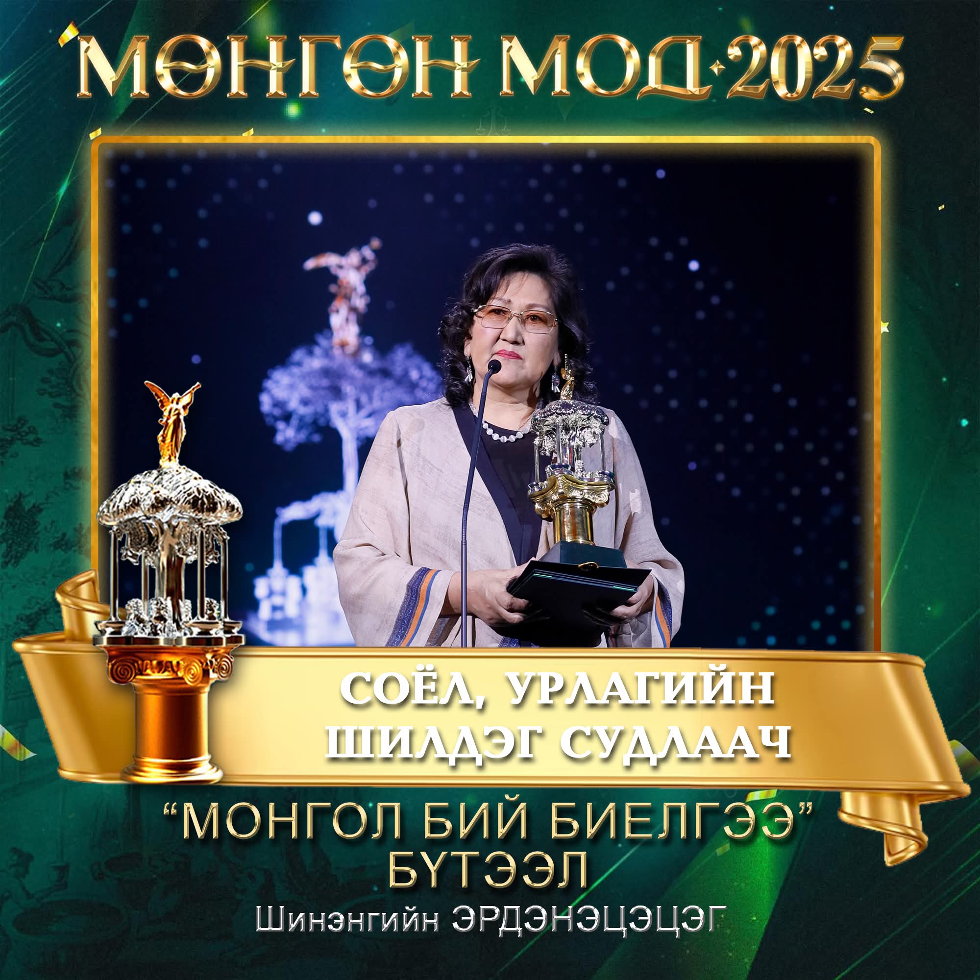 Оны шилдэг уран бүтээлч, уран бүтээлийг шалгаруулдаг “Мөнгөн мод-2025” ёслолын арга хэмжээ 2026 оны 03 дугаар сарын 27-ны өдөр Дуурь Бүжгийн Эрдмийн театрт амжилттай зохион байгуулагдаж, шилдгүүдээ тодрууллаа.