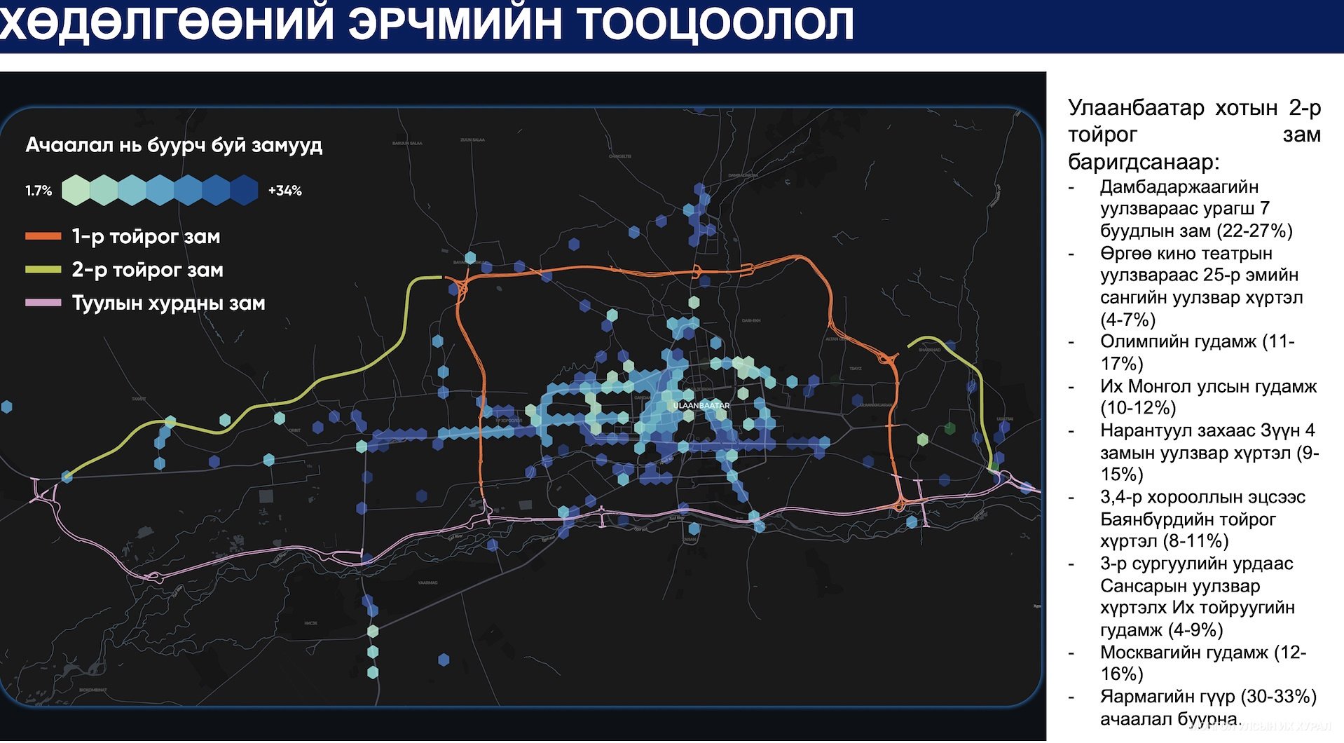 Мөн тэрбээр уг төслийг “Улаанбаатар хотын ерөнхий төлөвлөгөө 2040”-тэй уялдуулсан. Улаанбаатар хотын түгжрэлд энэ төсөлд маш их ач холбогдолтой. 2026 онд Улаанбаатар хотын автомашины тоо 804 мянга зорчигч хөдөлгөөн 2.4 сая болсон тул цаг үетэйгээ нийцүүлээд зураг төсөл, техник эдийн засгийн үндэслэлээ шинэчлэх шаардлагатай болж, хот төлөвлөлт судалгааны институц 2025 оны 1 дүгээр сард шинэчилсэн гээд, хөдөлгөөний ачааллыг хэрхэн буурах талаар дэлгэрэнгүй тайлбарлав.Туулын хурдны зам баригдсанаар хөдөлгөөний ачаалал хэрхэн буурах талаар доорх зурагнаас харна уу.
