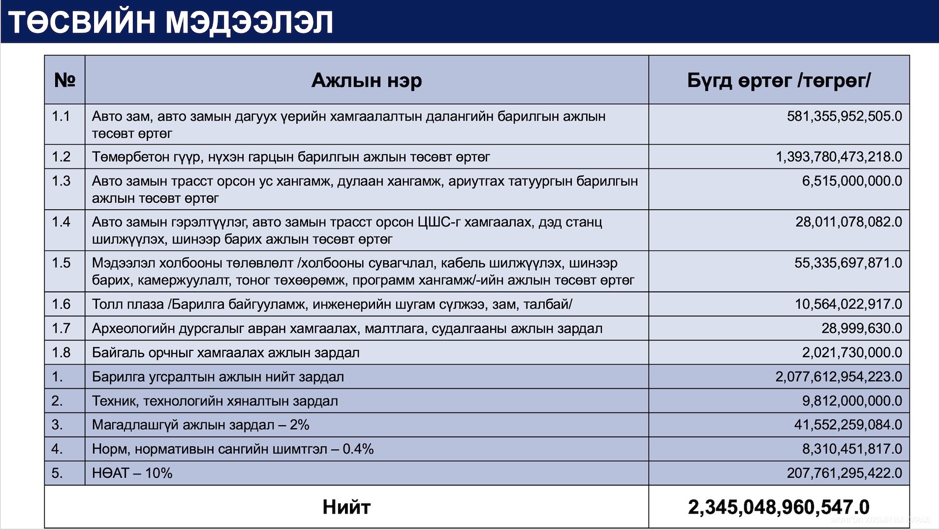 Улсын Их Хурлын Төсвийн байнгын хорооны өнөөдрийн /2026.04.01/ хуралдаанаар “Туулын хурдны зам” төслийн эдийн засгийн үр ашиг, техник эдийн засгийн үндэслэл (ТЭЗҮ), төсөвт өртөг, санхүүжилтийн эх үүсвэр, төсөвт үзүүлэх нөлөөлөл, мөн гүйцэтгэгчийн сонгон шалгаруулалттай холбогдох мэдээллийг сонслоо.